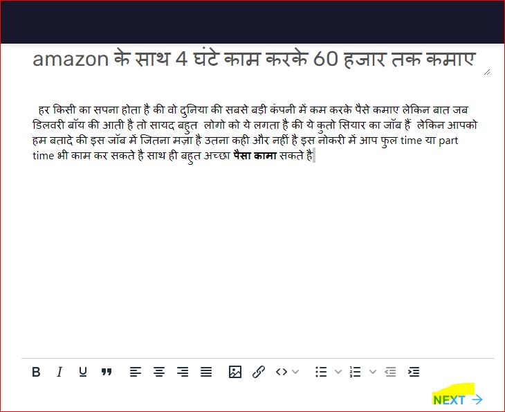 यहां पर सबसे ऊपर आपको टायटल का ऑप्शन मिल जाएगा जहां पर आप अपने पोस्ट का टायटल लिख सकते हैं, इसके साथ आप अपने डेलीहंट पोस्ट में Video, Images, Link, Bullets, etc. को लगा सकते है, जब आपका आर्टिकल पूरे तरीके से तैयार हो जाए तो इसके बाद आप नीचे Next के ऑप्शन पर क्लिक करके।